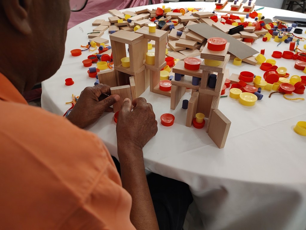 Joel was sitting beside his friend David and began building a structure with little wooden blocks. You can see Joel’s hands in the background of the above photo. The experience brought back a powerful memory from a long time ago.