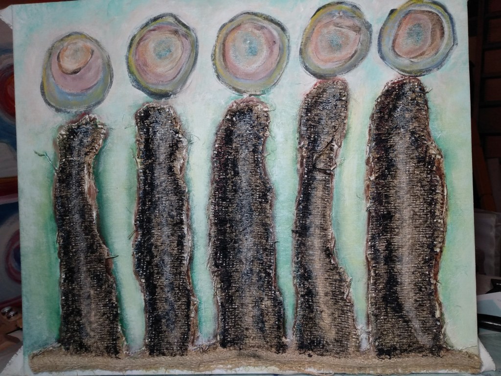 Jody expressed her interest in one of my recent painting “Five Friends”, a study of texture, form, color, composition and connection.